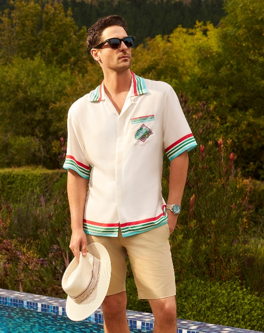A corner of Paradise, the best way to take in Positano’s beauty is with a fresh espresso in hand. Dressed in an Eton printed button-up and an olive green chino, soak in the terrace view overlooking the La Zagara citrus grove.